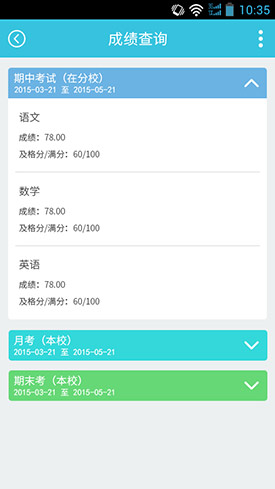 成绩查询:衡量学生对知识的掌握程度,检测学员阶段性的学习成果。